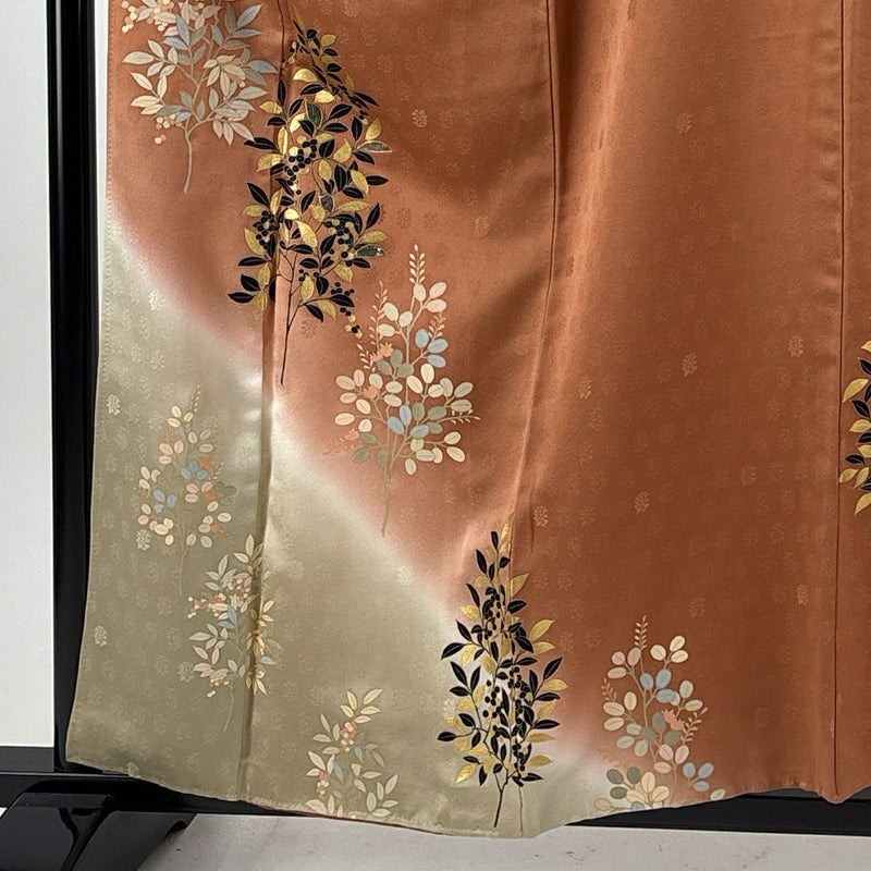 【着物ランク】秀品 【素材】正絹 【身丈】約158cm 【裄丈】約65cm 【袖丈】約50cm 【袖幅】約33cm 【前幅】約23.5cm 【後幅】約28.5cm 【サイズ】M 【着物仕立て】袷 【着用時期】10~5月 【状態ランク】ランクC 【着物着用シーン】披露宴、パーティー、式典、食事会、お茶会、正月