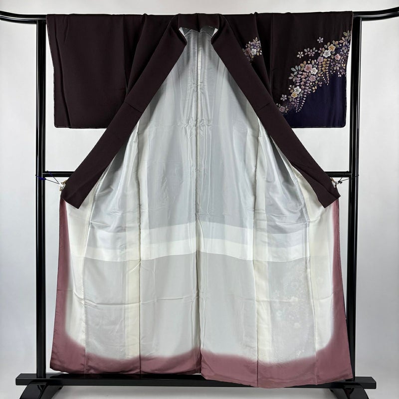 【付下げ】 茶系 茶紫 名品 B 約150cm~約159cm 裄丈62cm以下 (S)size 袖丈48cm 9990-29990 二万以下