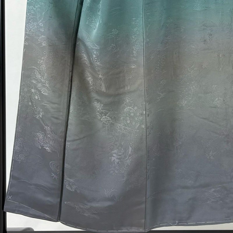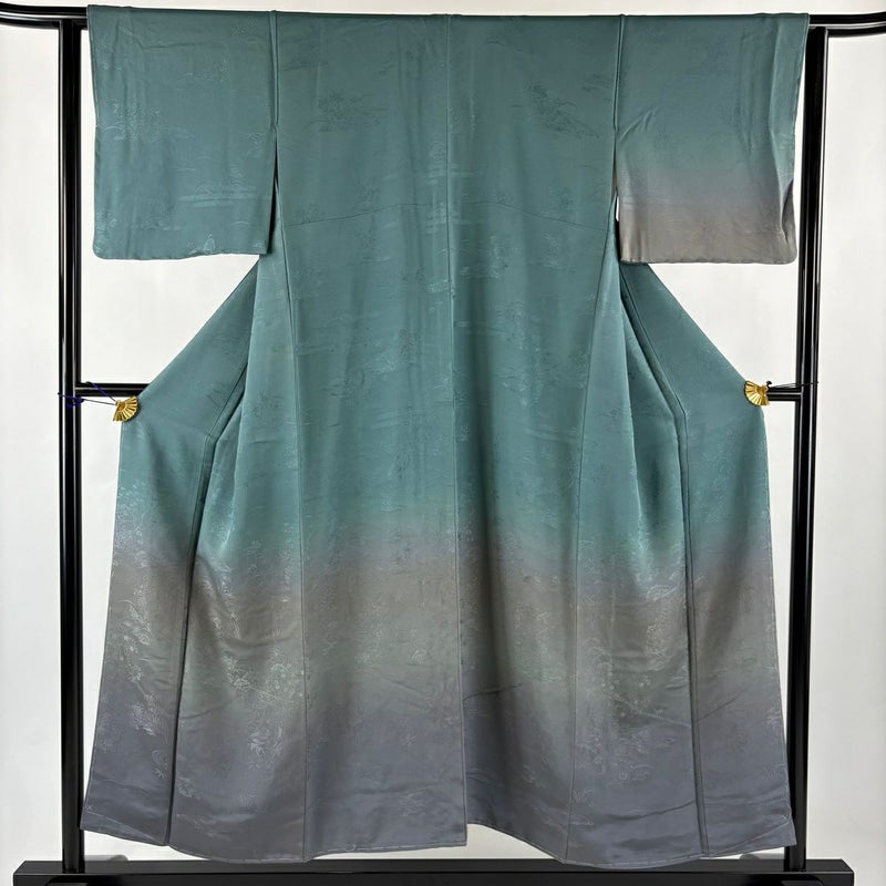 【付下げ】 灰色系 灰緑 秀品 B 約150cm~約159cm 裄丈63cm-64cm (S)size 袖丈46cm以下 4000-7980 二万以下