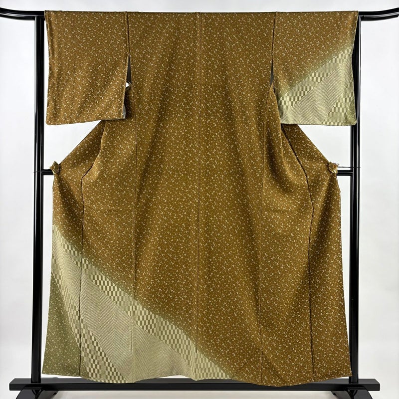 【付下げ】 黄色系 黄土色 秀品 A 約150cm~約159cm 裄丈63cm-64cm (M)size 袖丈49cm 7990-9980 美品 二万以下