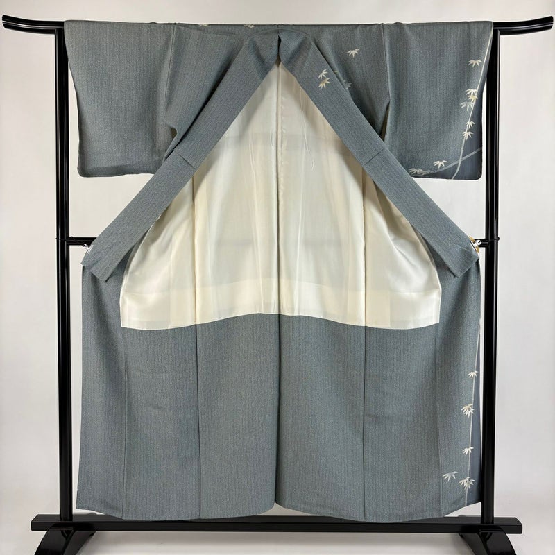 【付下げ】 灰色系 灰緑 名品 C 約150cm~約159cm 裄丈63cm-64cm (M)size 袖丈48cm 9990-29990 二万以下