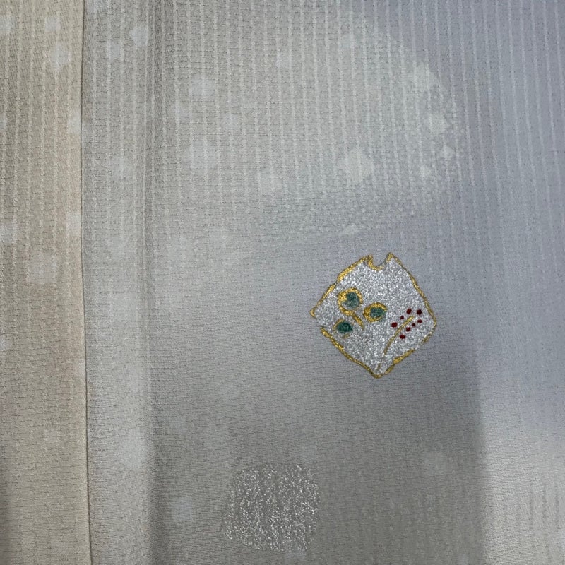 【着物ランク】秀品 【素材】正絹 【身丈】約169cm 【裄丈】約67cm 【袖丈】約49cm 【袖幅】約35cm 【前幅】約24.5cm 【後幅】約30cm 【サイズ】M 【着物仕立て】袷 【着用時期】10~5月 【状態ランク】ランクB 【着物着用シーン】披露宴、パーティー、式典、食事会、お茶会、正月