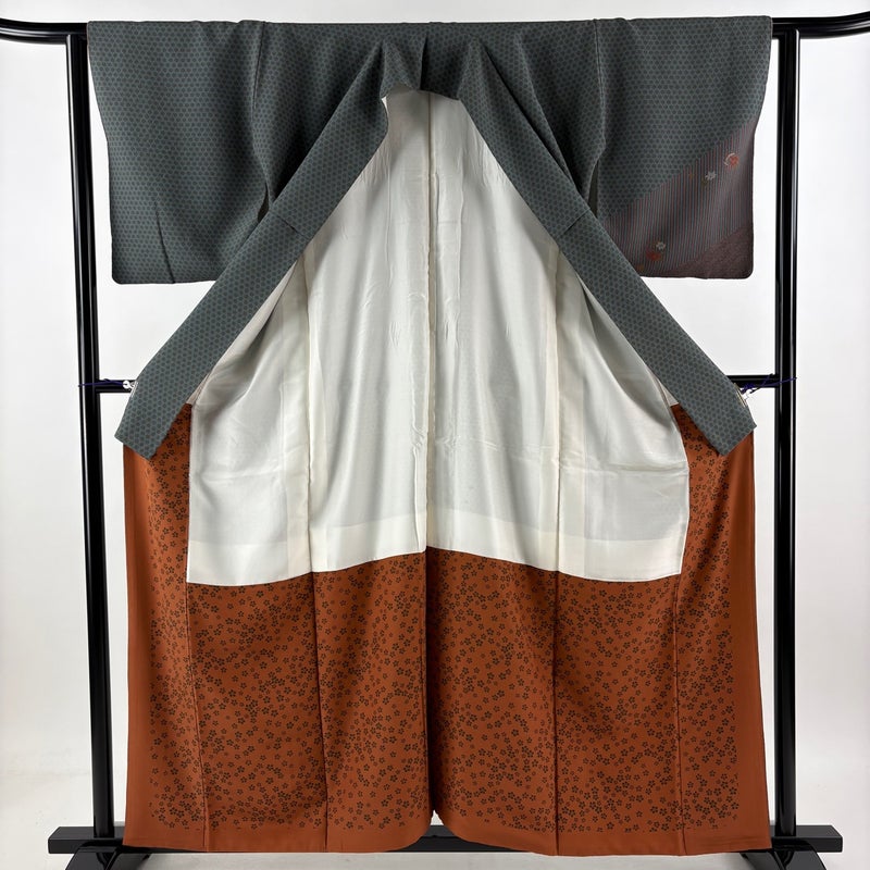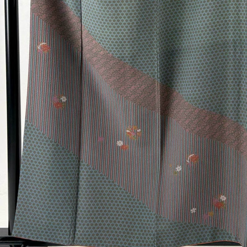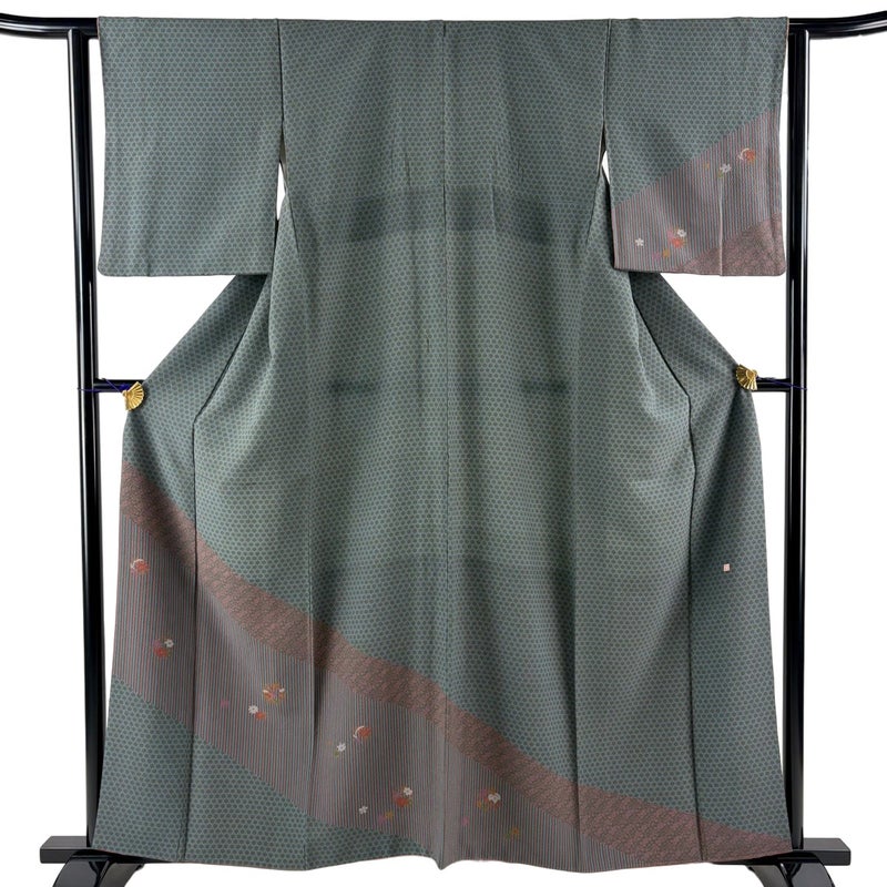 【付下げ】 灰色系 灰緑 秀品 B 約150cm~約159cm 裄丈62cm以下 (S)size 袖丈48cm 4000-7980 二万以下