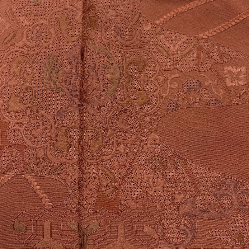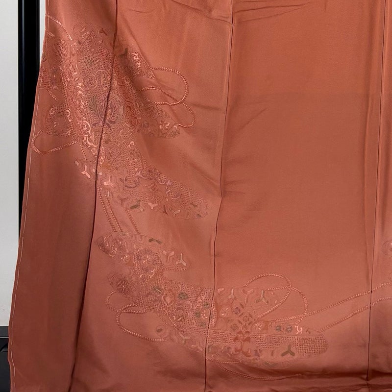 【付下げ】 赤系 サーモンピンク 秀品 C 約170cm~約179cm 裄丈69cm以上 (L)size 袖丈50cm-60cm 4000-7980 二万以下