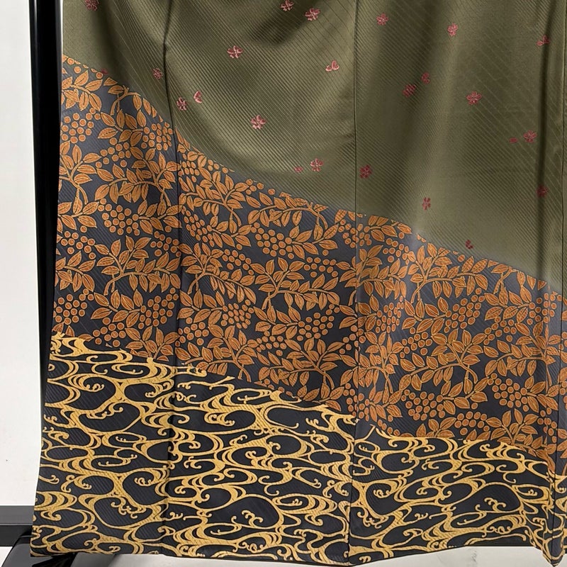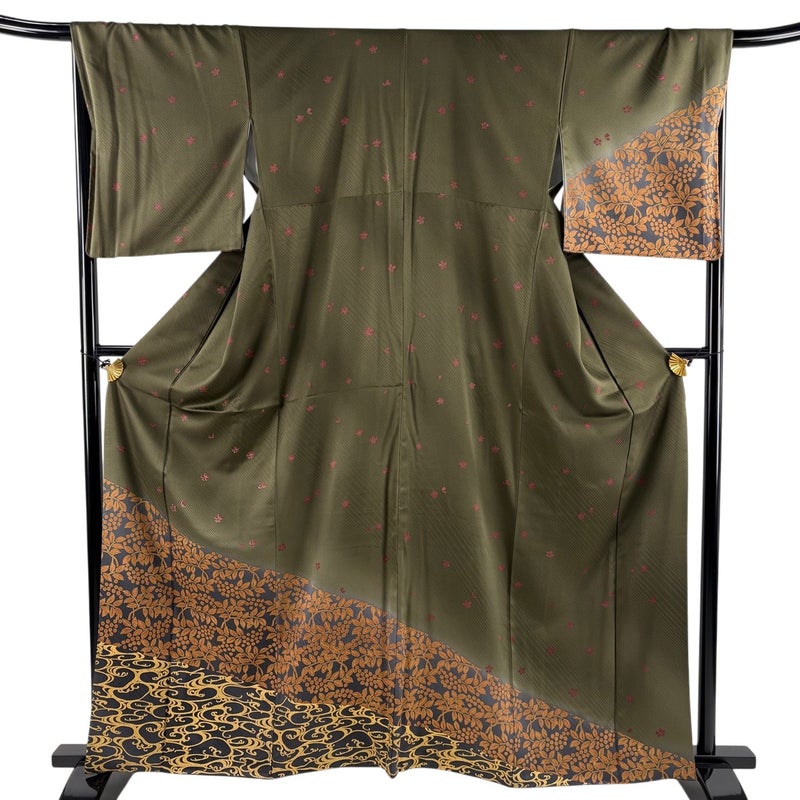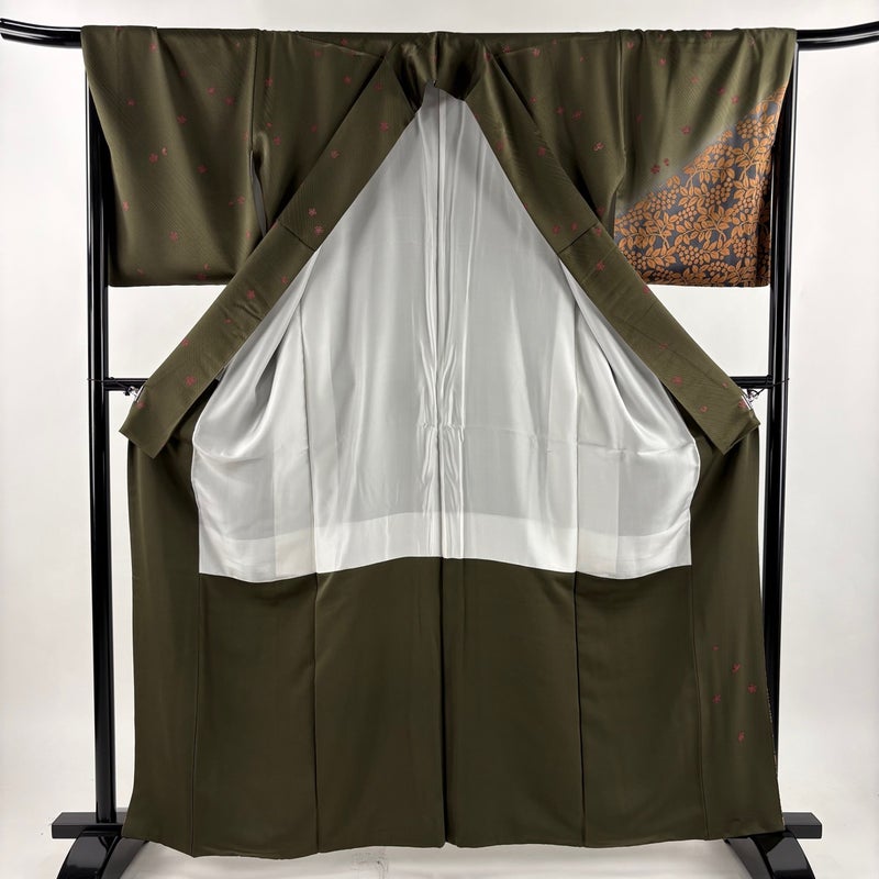 【付下げ】 茶系 茶緑色 秀品 B 約160cm~約169cm 裄丈67cm-68cm (L)size 袖丈49cm 4000-7980 二万以下
