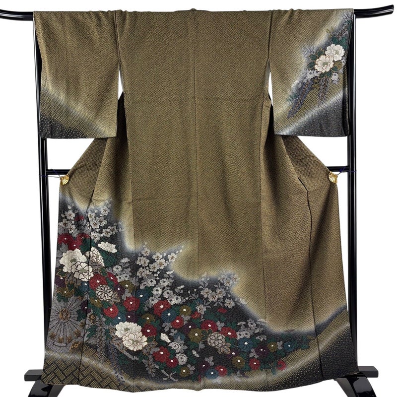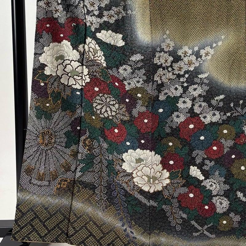 【着物ランク】名品 【素材】正絹 【身丈】約164cm 【裄丈】約66.5cm 【袖丈】約54.5cm 【袖幅】約34.5cm 【前幅】約24.5cm 【後幅】約29cm 【サイズ】M 【着物仕立て】袷 【着用時期】10~5月 【状態ランク】ランクA 【着物着用シーン】披露宴、パーティー、式典、食事会、お茶会、正月