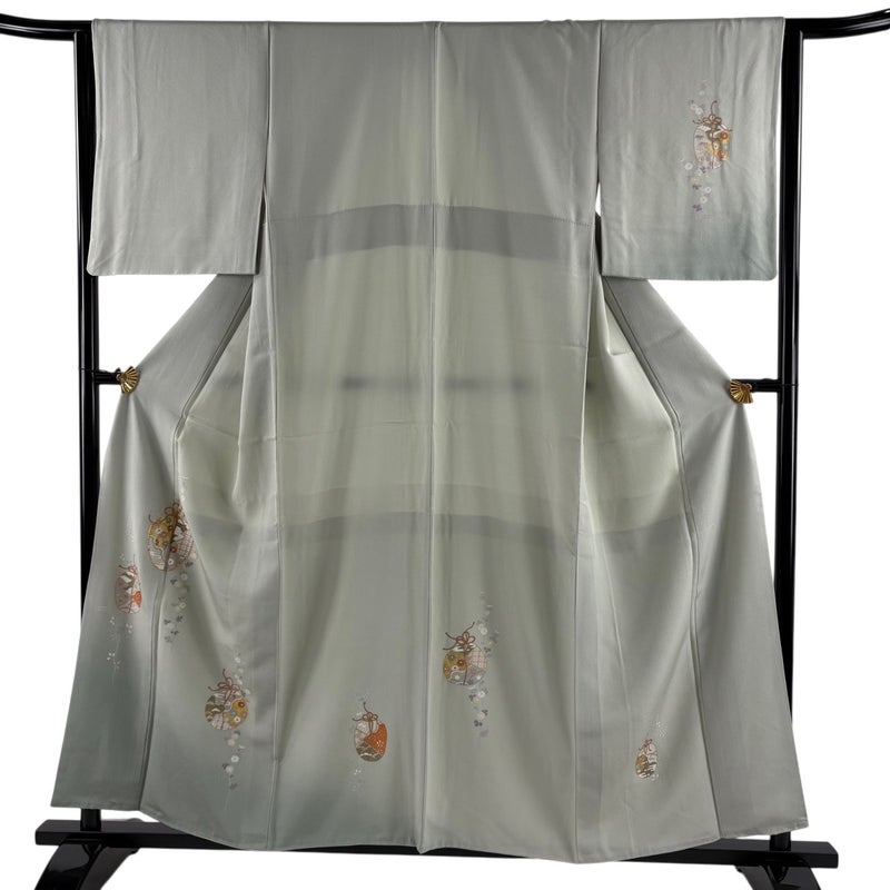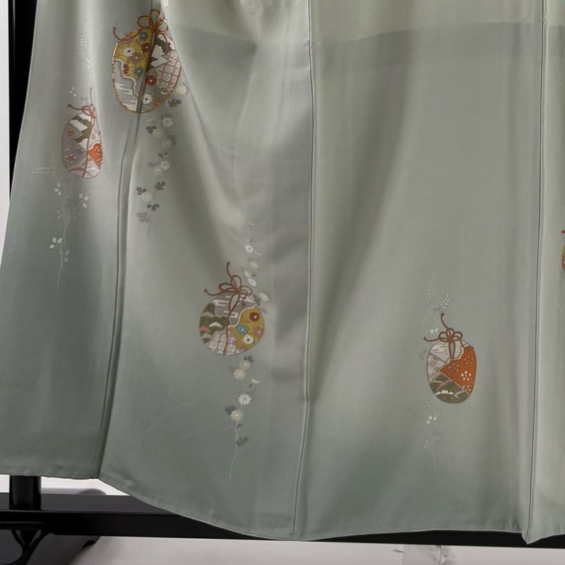 【付下げ】 緑系 薄緑 秀品 B 約150cm~約159cm 裄丈63cm-64cm (S)size 袖丈48cm 4000-7980 二万以下