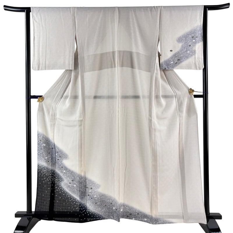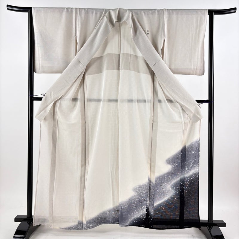 【付下げ】 灰色系 灰白 秀品 A 約160cm~約169cm 裄丈63cm-64cm (M)size 袖丈47cm 9990-29990 美品 二万以下