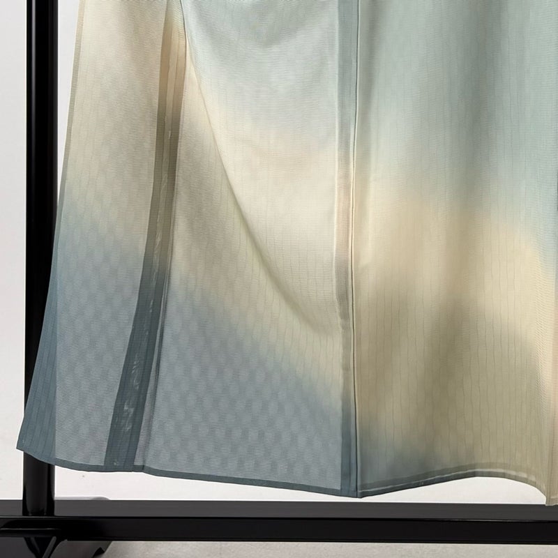 【着物ランク】秀品 【素材】正絹 【身丈】約154cm 【裄丈】約65cm 【袖丈】約49cm 【袖幅】約33cm 【前幅】約28.5cm 【後幅】約33cm 【サイズ】M 【着物仕立て】薄物 【着用時期】7~8月 【状態ランク】ランクA 【着物着用シーン】披露宴、パーティー、式典、食事会、お茶会、正月