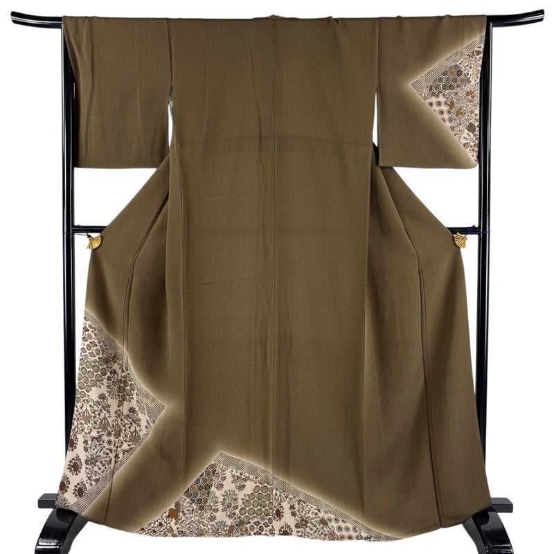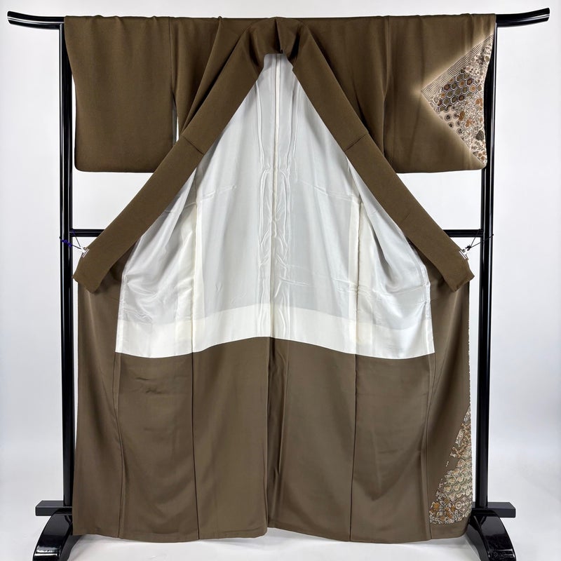【付下げ】 茶系 茶緑色 秀品 B 約160cm~約169cm 裄丈67cm-68cm (M)size 袖丈48cm 4000-7980 二万以下