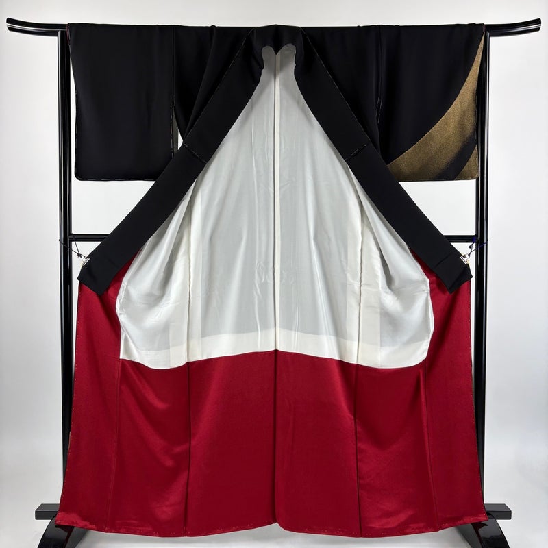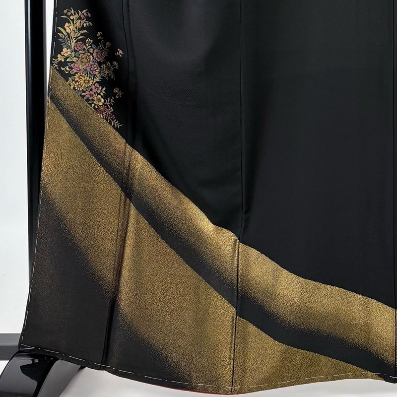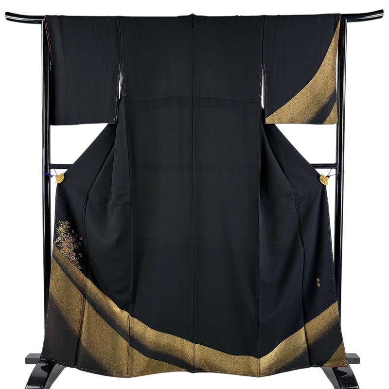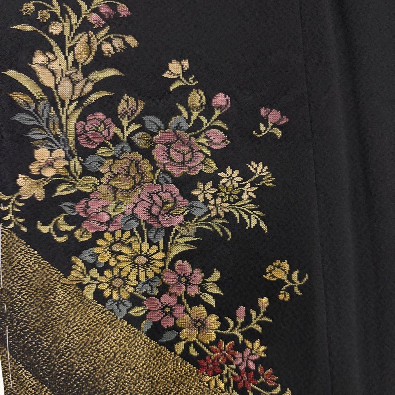 【付下げ】 黒系 黒 秀品 A 約160cm~約169cm 裄丈63cm-64cm (M)size 袖丈48cm 7990-9980 美品 二万以下