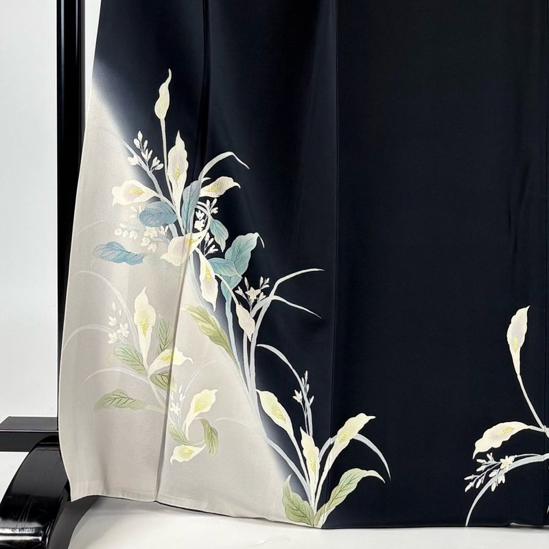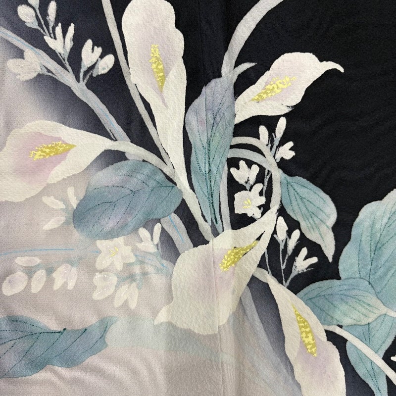【付下げ】 黒系 黒 秀品 B 約160cm~約169cm 裄丈69cm以上 (L)size 袖丈47cm 4000-7980 二万以下