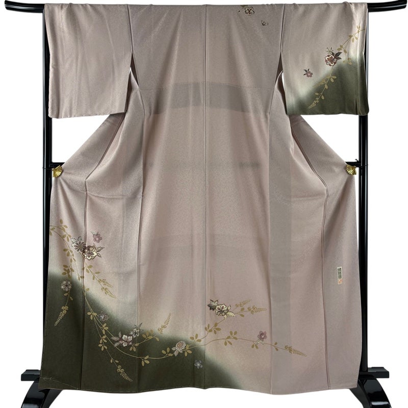 【着物ランク】秀品 【素材】正絹 【身丈】約164cm 【裄丈】約66.5cm 【袖丈】約49cm 【袖幅】約34.5cm 【前幅】約24cm 【後幅】約29.5cm 【サイズ】M 【着物仕立て】袷 【着用時期】10~5月 【状態ランク】ランクA 【着物着用シーン】披露宴、パーティー、式典、食事会、お茶会、正月