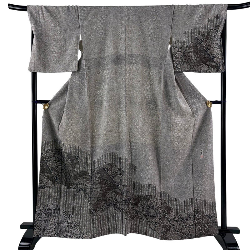 【付下げ】 灰色系 灰茶 秀品 A 約160cm~約169cm 裄丈67cm-68cm (L)size 袖丈49cm 7990-9980 美品 二万以下