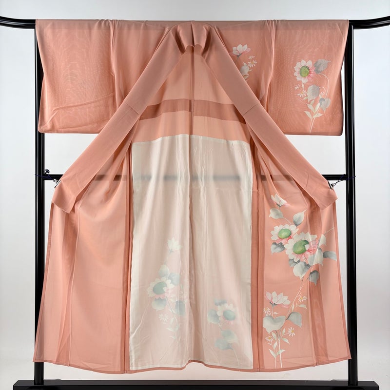 【着物ランク】秀品 【素材】正絹 【身丈】約150cm 【裄丈】約65cm 【袖丈】約49cm 【袖幅】約34cm 【前幅】約25cm 【後幅】約31cm 【サイズ】M 【着物仕立て】薄物 【着用時期】7~8月 【状態ランク】ランクC 【着物着用シーン】披露宴、パーティー、式典、食事会、お茶会、正月