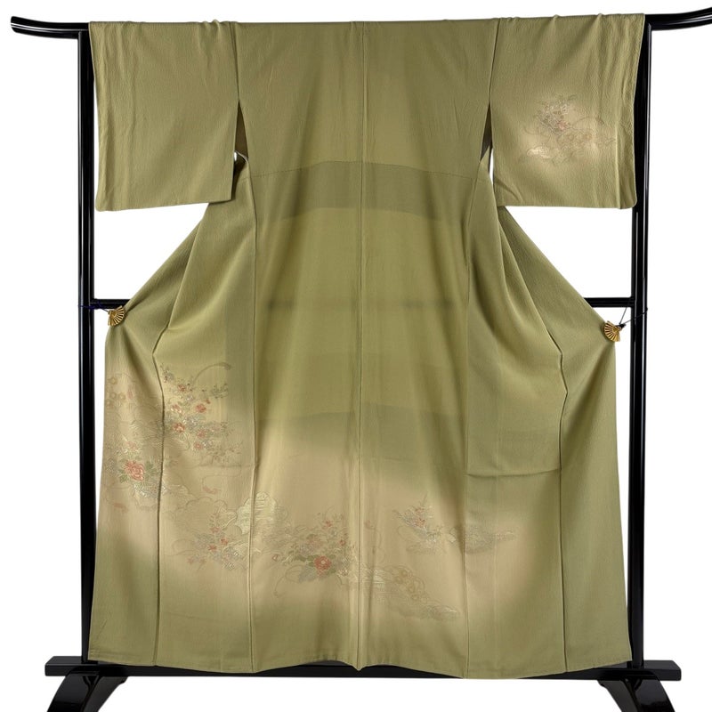 【付下げ】 緑系 抹茶色 秀品 C 約150cm~約159cm 裄丈65cm (M)size 袖丈46cm以下 4000-7980 二万以下