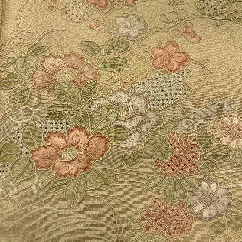 【着物ランク】秀品 【素材】正絹 【身丈】約158cm 【裄丈】約65.5cm 【袖丈】約46.5cm 【袖幅】約34cm 【前幅】約24cm 【後幅】約29cm 【サイズ】M 【着物仕立て】袷 【着用時期】10~5月 【状態ランク】ランクC 【着物着用シーン】披露宴、パーティー、式典、食事会、お茶会、正月