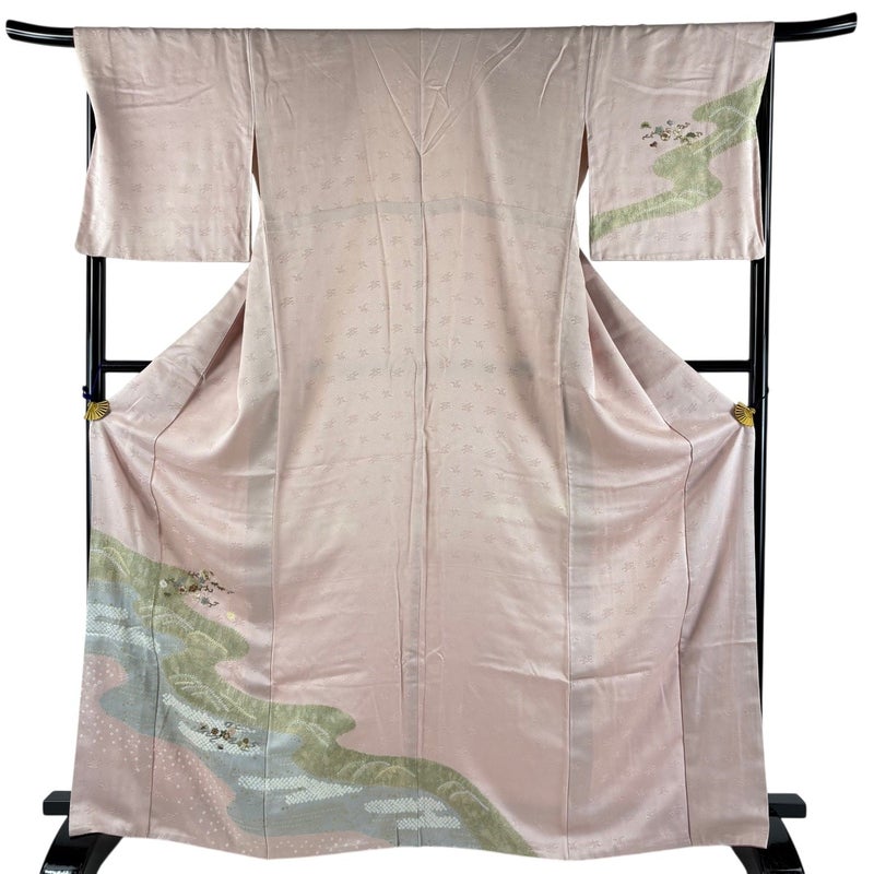 【着物ランク】秀品 【素材】正絹 【身丈】約167cm 【裄丈】約67.5cm 【袖丈】約47cm 【袖幅】約35cm 【前幅】約24cm 【後幅】約30cm 【サイズ】L 【着物仕立て】袷 【着用時期】10~5月 【状態ランク】ランクB 【着物着用シーン】披露宴、パーティー、式典、食事会、お茶会、正月