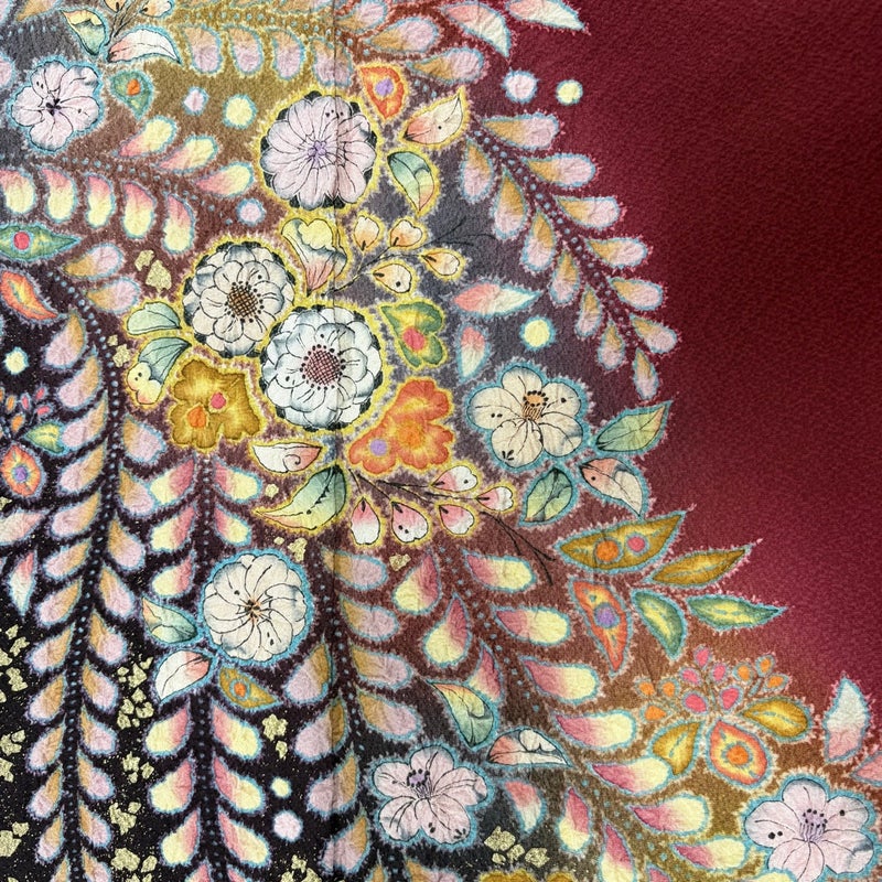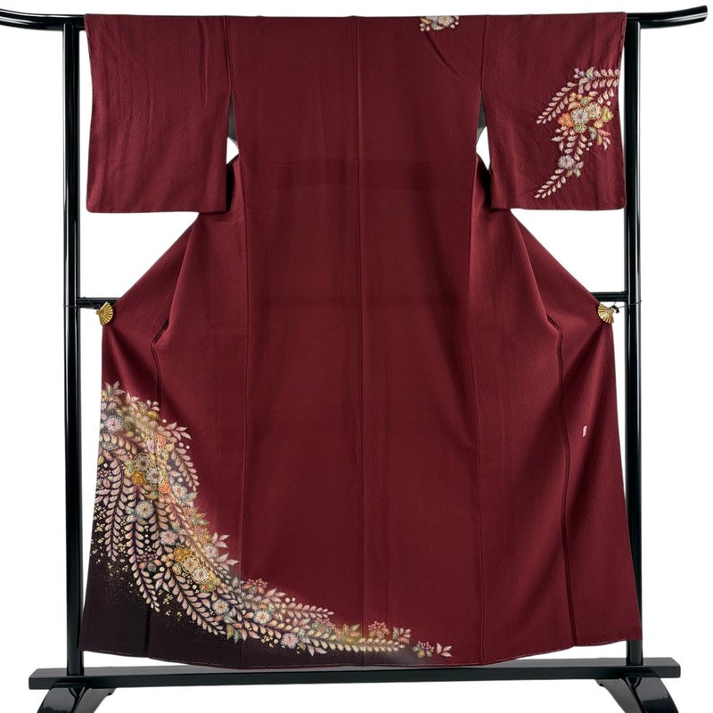 【付下げ】 赤系 えんじ色 秀品 A 約150cm~約159cm 裄丈62cm以下 (S)size 袖丈48cm 7990-9980 美品 二万以下