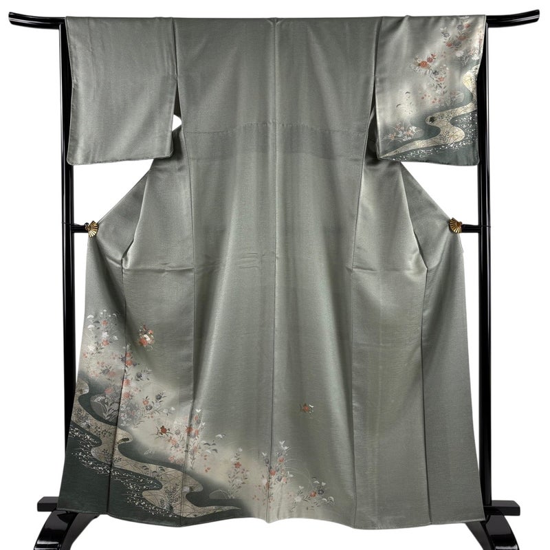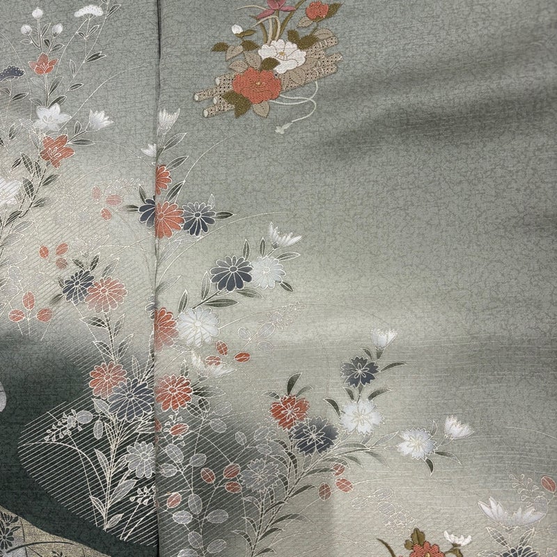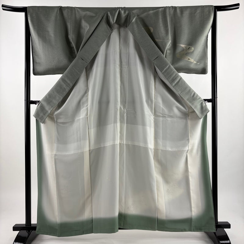 【付下げ】 灰色系 灰緑 秀品 B 約160cm~約169cm 裄丈66cm (M)size 袖丈49cm 4000-7980 二万以下