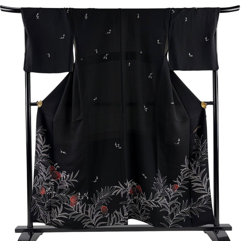 【付下げ】 黒系 黒 秀品 A 約150cm~約159cm 裄丈67cm-68cm (L)size 袖丈46cm以下 7990-9980 美品 二万以下