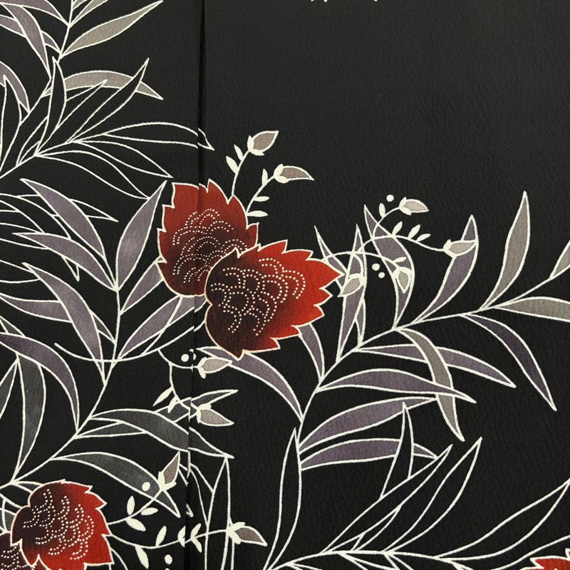 【着物ランク】秀品 【素材】正絹 【身丈】約155cm 【裄丈】約68cm 【袖丈】約45.5cm 【袖幅】約36cm 【前幅】約26cm 【後幅】約30.5cm 【サイズ】L 【着物仕立て】袷 【着用時期】10~5月 【状態ランク】ランクA 【着物着用シーン】披露宴、パーティー、式典、食事会、お茶会、正月