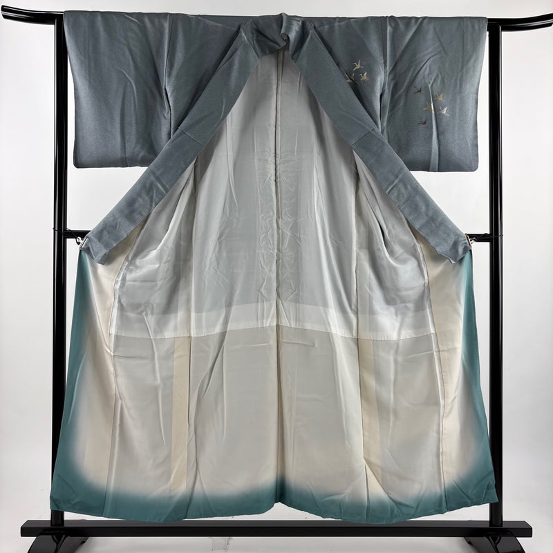 【付下げ】 灰色系 灰緑 秀品 B 約150cm~約159cm 裄丈63cm-64cm (M)size 袖丈47cm 4000-7980 二万以下