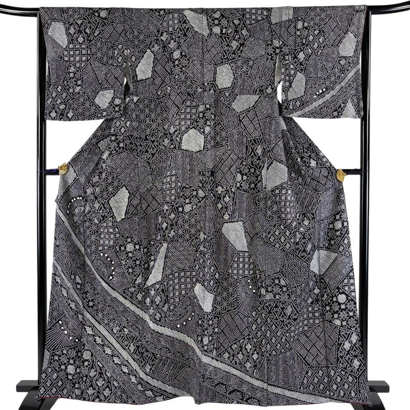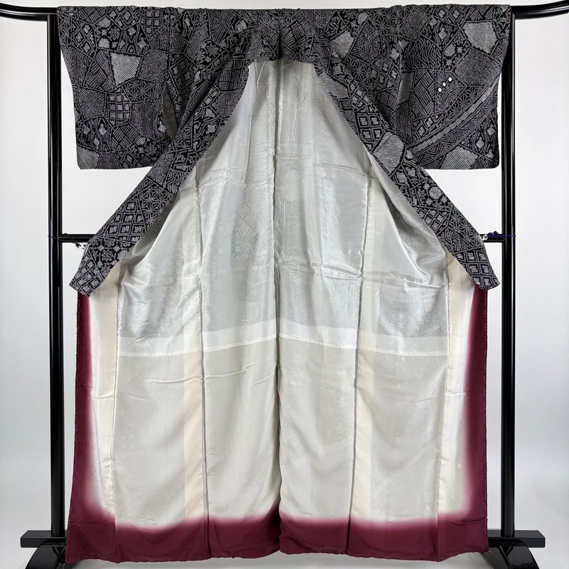 【付下げ】 黒系 黒 秀品 A 約160cm~約169cm 裄丈63cm-64cm (S)size 袖丈47cm 7990-9980 美品 二万以下