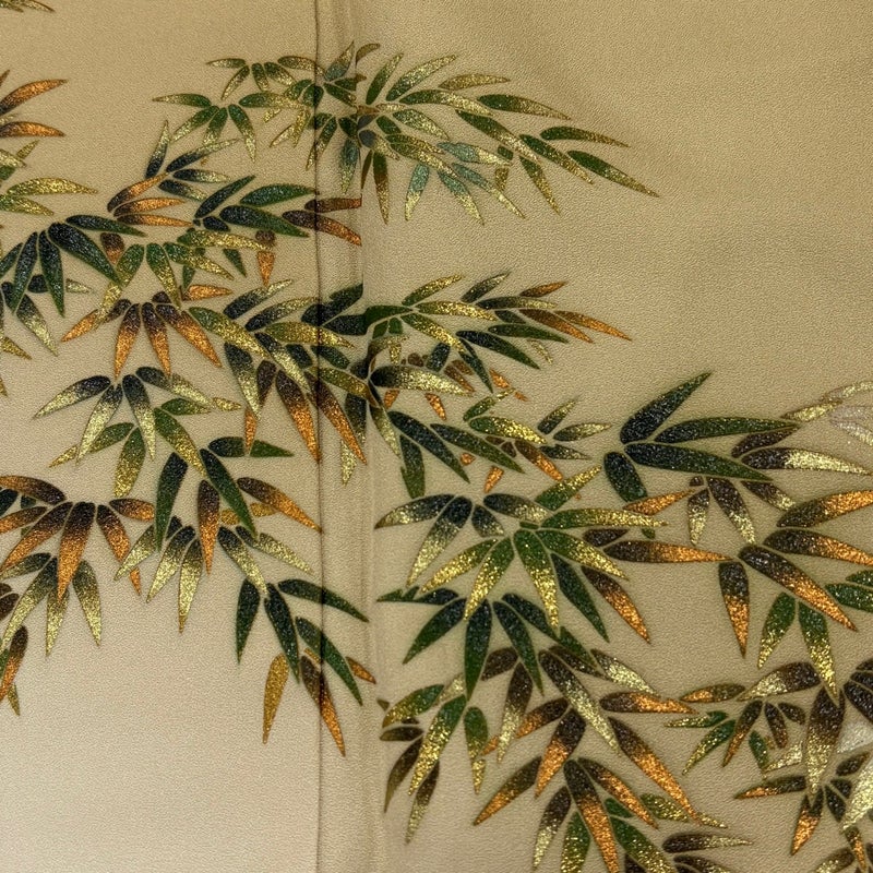 【着物ランク】秀品 【素材】正絹 【身丈】約159cm 【裄丈】約64cm 【袖丈】約49cm 【袖幅】約32cm 【前幅】約24.5cm 【後幅】約30cm 【サイズ】M 【着物仕立て】袷 【着用時期】10~5月 【状態ランク】ランクB 【着物着用シーン】披露宴、パーティー、式典、食事会、お茶会、正月