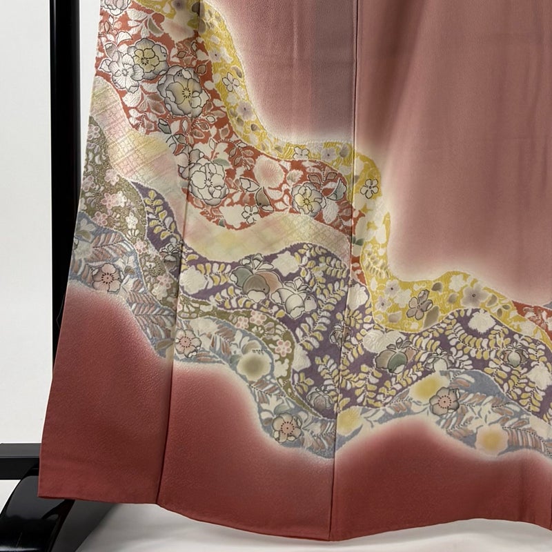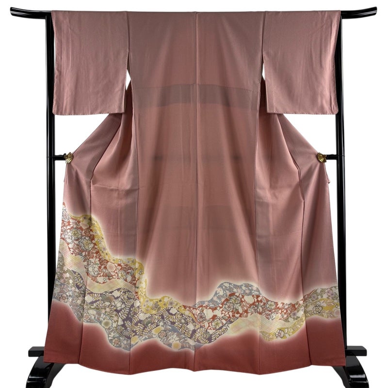 【付下げ】 赤系 ピンク 秀品 A 約160cm~約169cm 裄丈65cm (M)size 袖丈49cm 7990-9980 美品 二万以下
