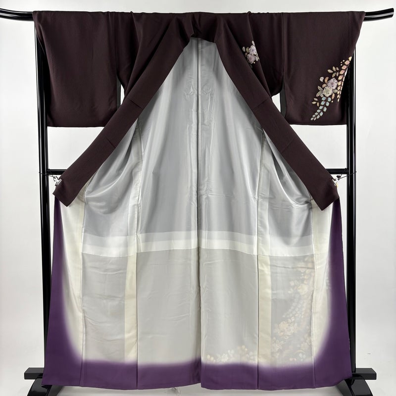 【付下げ】 茶系 茶紫 名品 A 約160cm~約169cm 裄丈69cm以上 (L)size 袖丈48cm 9990-29990 美品 二万以下