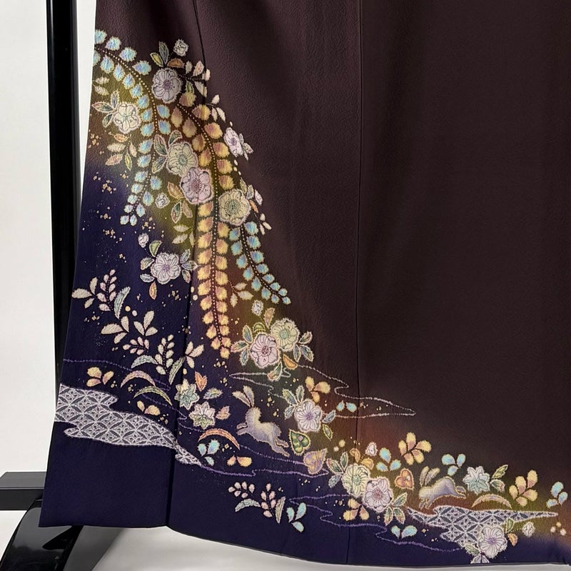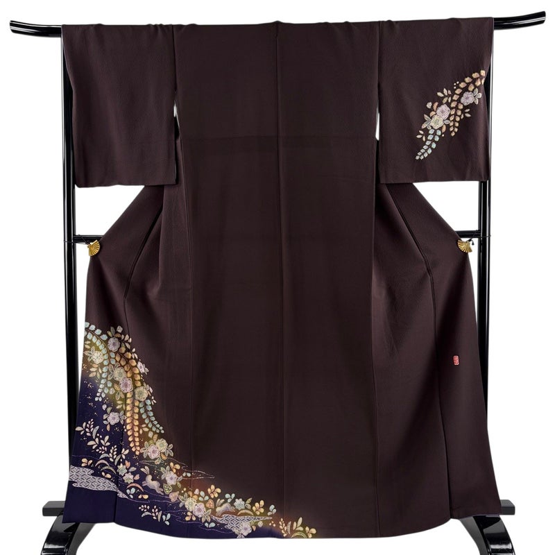 【付下げ】 茶系 茶紫 名品 B 約160cm~約169cm 裄丈67cm-68cm (M)size 袖丈50cm-60cm 9990-29990 二万以下