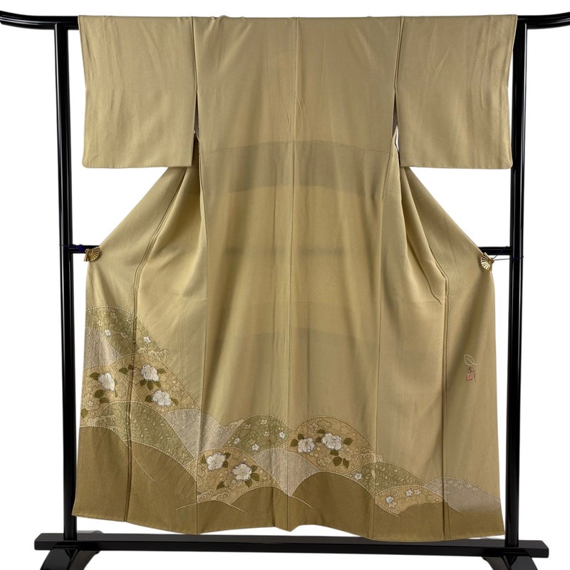 【着物ランク】名品 【素材】正絹 【身丈】約154cm 【裄丈】約61.5cm 【袖丈】約45cm 【袖幅】約32.5cm 【前幅】約23cm 【後幅】約28.5cm 【サイズ】S 【着物仕立て】袷 【着用時期】10~5月 【状態ランク】ランクC 【着物着用シーン】披露宴、パーティー、式典、食事会、お茶会、正月