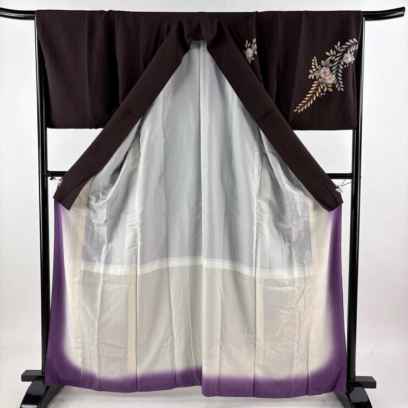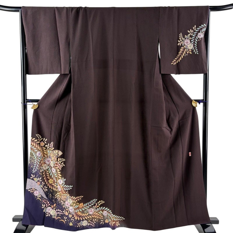 【付下げ】 茶系 茶紫 名品 B 約160cm~約169cm 裄丈66cm (M)size 袖丈48cm 9990-29990 二万以下