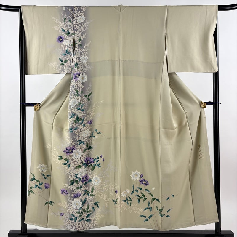 【着物ランク】名品 【素材】正絹 【身丈】約155cm 【裄丈】約65.5cm 【袖丈】約47cm 【袖幅】約34.5cm 【前幅】約24cm 【後幅】約30cm 【サイズ】M 【着物仕立て】袷 【着用時期】10~5月 【状態ランク】ランクB 【作家名】中村乃武夫 【着物着用シーン】披露宴、パーティー、式典、食事会、お茶会、正月