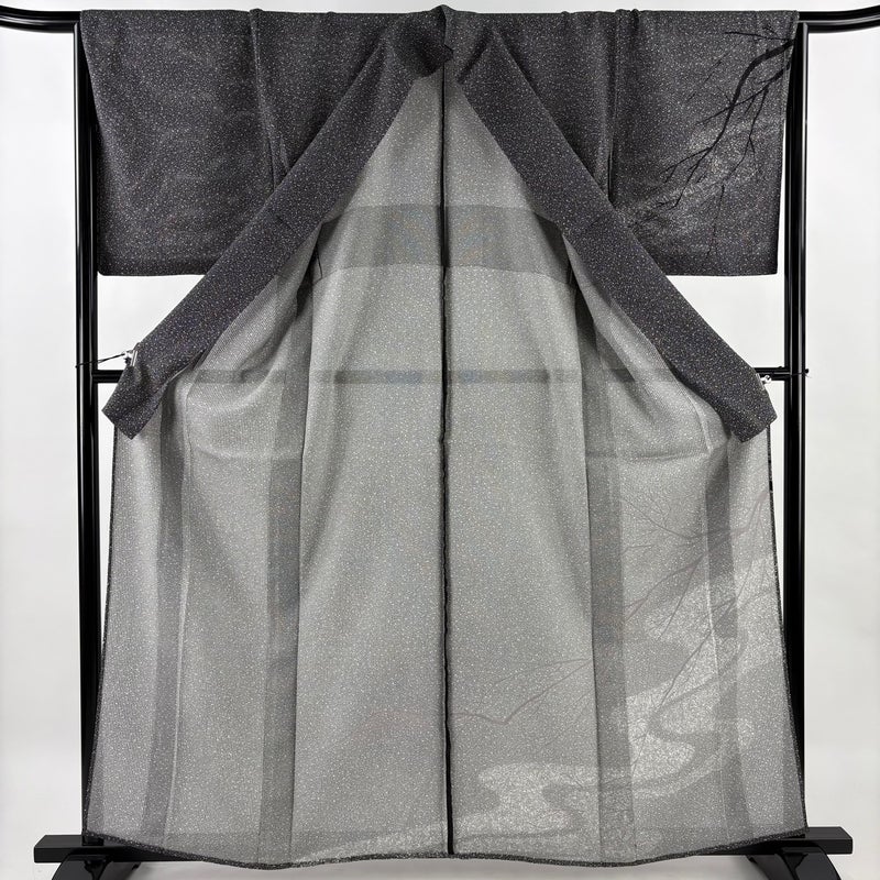 【付下げ】 灰色系 黒灰 名品 A 約160cm~約169cm 裄丈67cm-68cm (M)size 袖丈49cm 9990-29990 美品 二万以下