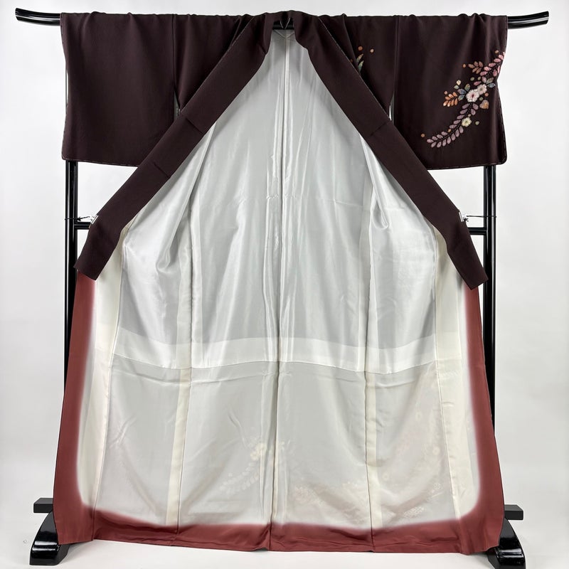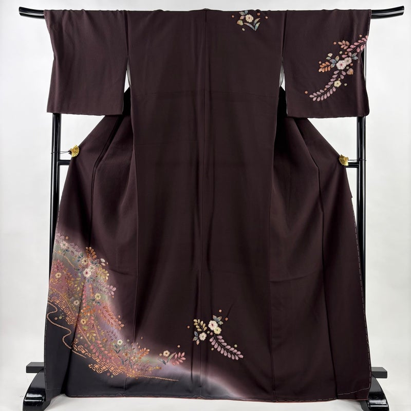 【付下げ】 茶系 茶紫 名品 B 約170cm~約179cm 裄丈69cm以上 (L)size 袖丈49cm 9990-29990 二万以下