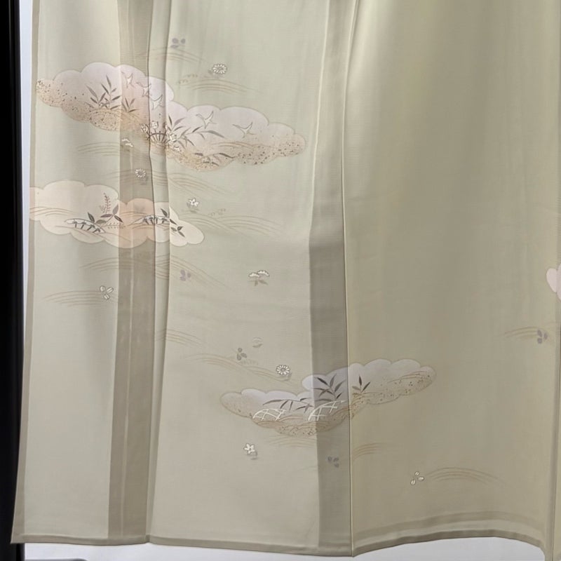 【付下げ】 白系 ベージュ 秀品 B 約150cm~約159cm 裄丈63cm-64cm (M)size 袖丈46cm以下 9990-29990 二万以下