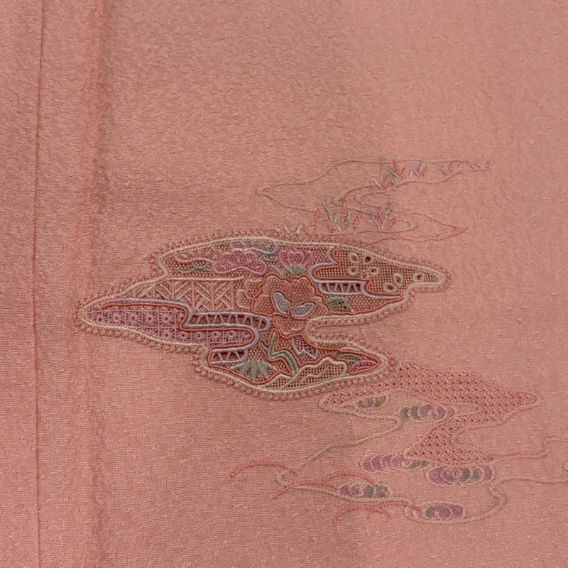 【付下げ】 赤系 サーモンピンク 秀品 A 約160cm~約169cm 裄丈63cm-64cm (S)size 袖丈48cm 7990-9980 美品 二万以下