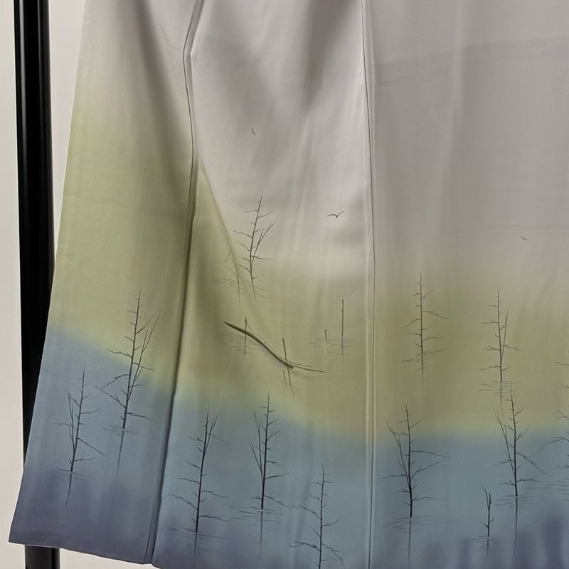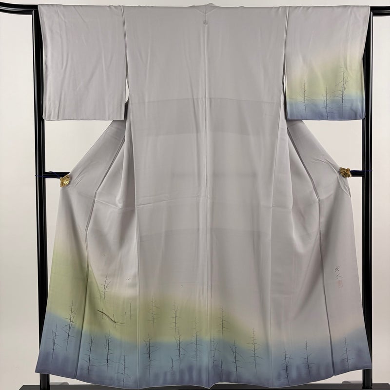 【付下げ】 灰色系 灰色 秀品 B 約150cm~約159cm 裄丈65cm (M)size 袖丈47cm 4000-7980 二万以下