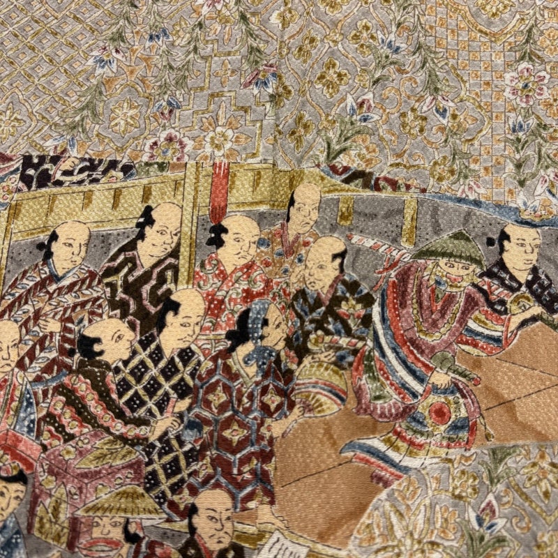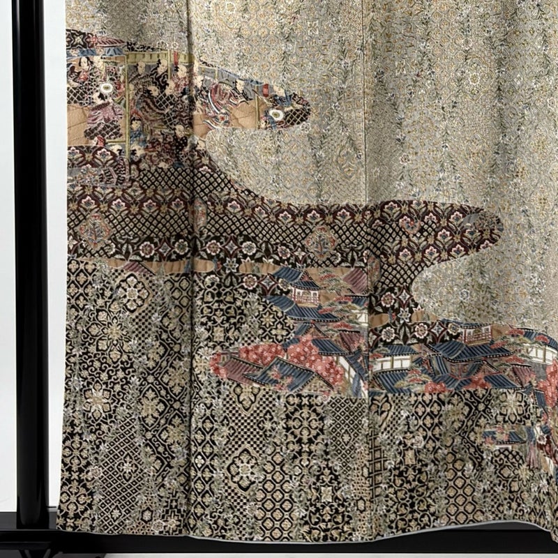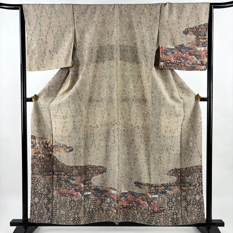 【着物ランク】秀品 【素材】正絹 【身丈】約158.5cm 【裄丈】約65cm 【袖丈】約47.5cm 【袖幅】約34cm 【前幅】約23.5cm 【後幅】約29cm 【サイズ】M 【着物仕立て】袷 【着用時期】10~5月 【状態ランク】ランクB 【作家名】二代目 更甚 【着物着用シーン】披露宴、パーティー、式典、食事会、お茶会、正月