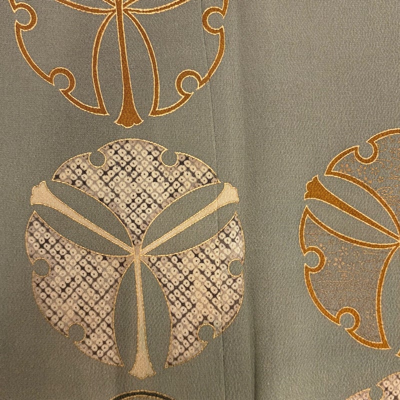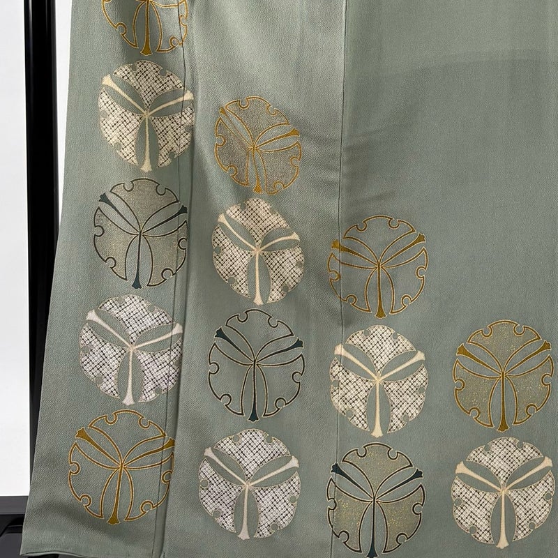 【付下げ】 灰色系 灰緑 秀品 C 約160cm~約169cm 裄丈67cm-68cm (L)size 袖丈49cm 4000-7980 二万以下