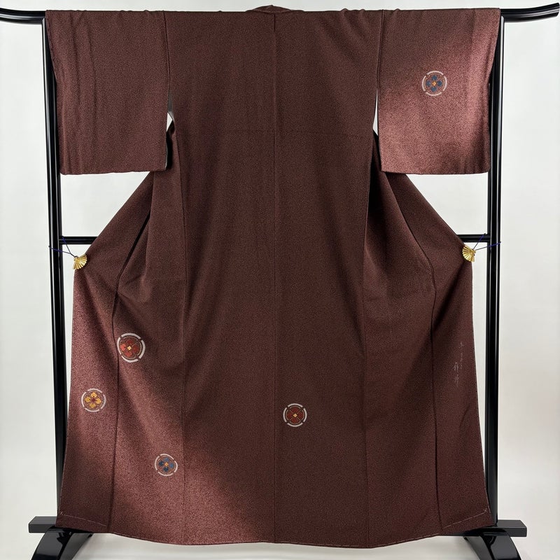 【付下げ】 赤系 えんじ色 秀品 A 約160cm~約169cm 裄丈66cm (M)size 袖丈49cm 7990-9980 美品 二万以下