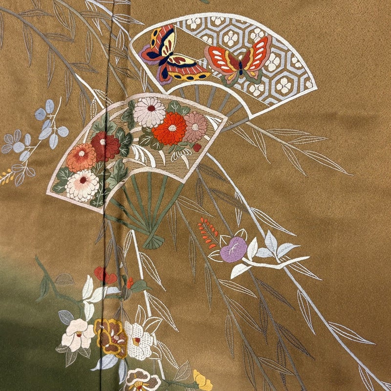 【着物ランク】秀品 【素材】正絹 【身丈】約159.5cm 【裄丈】約63cm 【袖丈】約48.5cm 【袖幅】約32.5cm 【前幅】約23.5cm 【後幅】約30cm 【サイズ】S 【着物仕立て】袷 【着用時期】10~5月 【状態ランク】ランクB 【着物着用シーン】披露宴、パーティー、式典、食事会、お茶会、正月