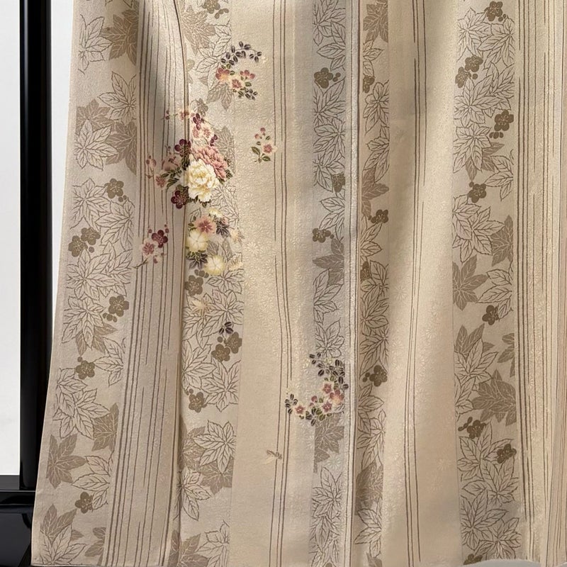 【着物ランク】名品 【素材】正絹 【身丈】約166cm 【裄丈】約66cm 【袖丈】約49cm 【袖幅】約34cm 【前幅】約23cm 【後幅】約28cm 【サイズ】M 【着物仕立て】袷 【着用時期】10~5月 【状態ランク】ランクB 【着物着用シーン】披露宴、パーティー、式典、食事会、お茶会、正月