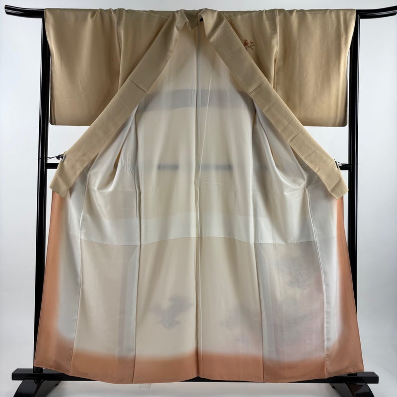 【付下げ】 黄色系 薄黄土色 秀品 B 約150cm~約159cm 裄丈66cm (M)size 袖丈50cm-60cm 4000-7980 二万以下
