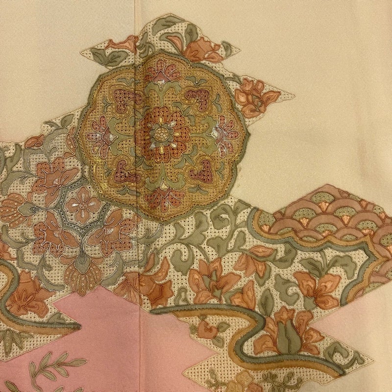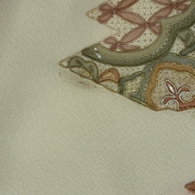 【着物ランク】秀品 【素材】正絹 【身丈】約158cm 【裄丈】約66cm 【袖丈】約50.5cm 【袖幅】約33.5cm 【前幅】約26.5cm 【後幅】約29.5cm 【サイズ】M 【着物仕立て】袷 【着用時期】10~5月 【状態ランク】ランクB 【着物着用シーン】披露宴、パーティー、式典、食事会、お茶会、正月