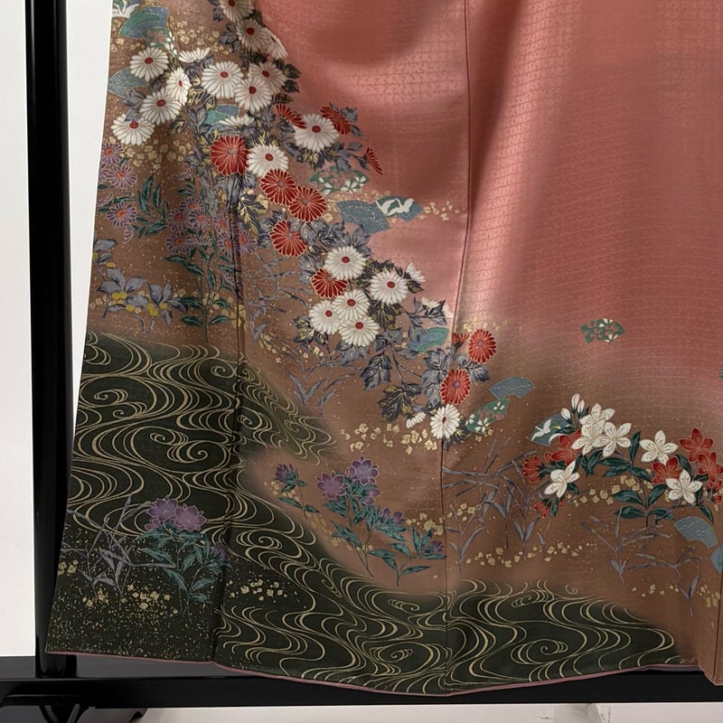 【着物ランク】秀品 【素材】正絹 【身丈】約157.5cm 【裄丈】約62cm 【袖丈】約47.5cm 【袖幅】約32cm 【前幅】約24cm 【後幅】約29cm 【サイズ】S 【着物仕立て】袷 【着用時期】10~5月 【状態ランク】ランクB 【着物着用シーン】披露宴、パーティー、式典、食事会、お茶会、正月