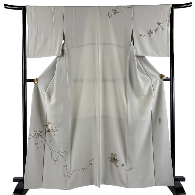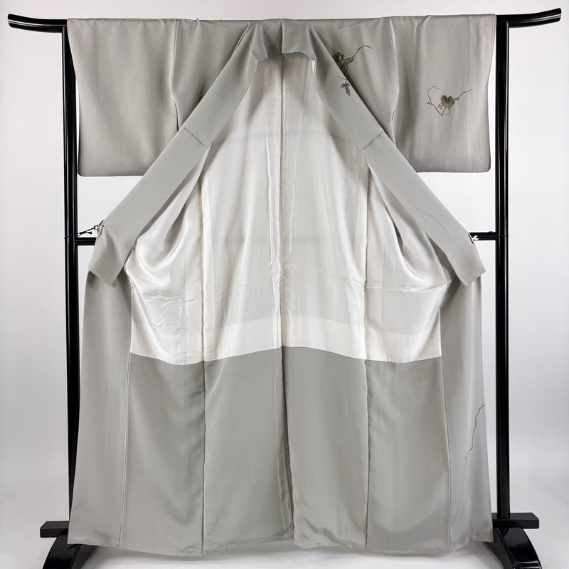 【付下げ】 灰色系 灰緑 秀品 B 約160cm~約169cm 裄丈63cm-64cm (M)size 袖丈48cm 4000-7980 二万以下