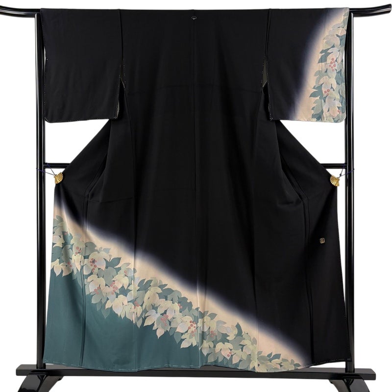 【付下げ】 黒系 黒 秀品 A 約150cm~約159cm 裄丈63cm-64cm (M)size 袖丈50cm-60cm 7990-9980 美品 二万以下